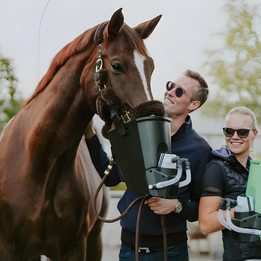 Der Equosonic Inhalator ermöglicht eine wohltuende und stressfreie Inhalation. Der feine Nebel unterstützt eine angenehme Atmung, ohne Atemwiderstand – für das Wohlbefinden Ihres Pferdes.